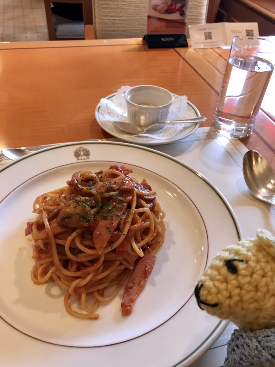 念願のホテルニューグランドのナポリタン。上品なトマトソースパスタの風情なのね。
